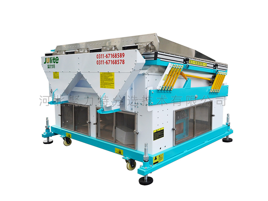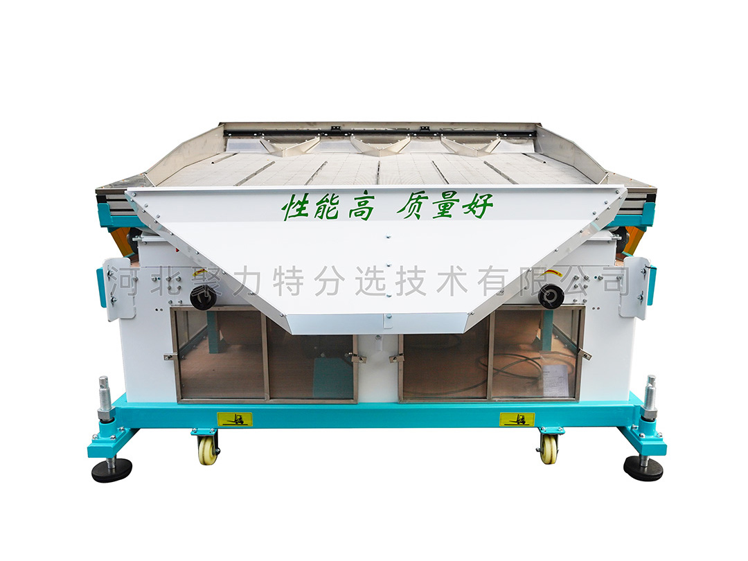 適用于單一目的物料的選別,能把物料中的并肩石(與物料粒度大小相似的砂石)等較重的雜質(zhì)有效去除。在糧食加工的工藝流程中應安裝在篩選流程的后段工序,未經(jīng)去除大、小、輕雜質(zhì)的原料,不應直接進入該機,以避免影響去石效果。